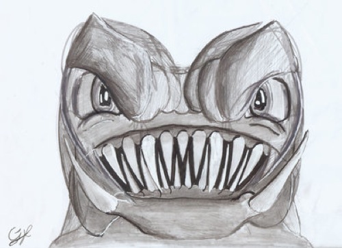 Luke’s unique vision of what the Mind Demon looks like. In a word, terrifying. This teeth and eyes do not look friendly. Here’s what Luke had to say about his Mind Demon art: