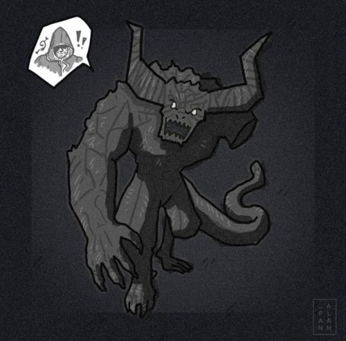 Hey everyone! You know, considering there’s no snow demons around, it’s way too cold! I end up having to burrow under a pile of blankets to stay warm. But another way to get toasty is to get the blood pumping with a little demon terror! Who could be cold if you’re thinking about Good ol’ One Arm chasing you down. Today I have an illustration to share with you featuring that terrifying demon, made by _panalan on Instagram!